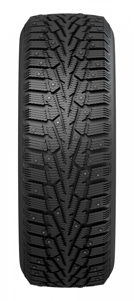 Несимметрично расположенные 16 рядов шипов попеременно вступают в контакт с дорогой. В пятне контакта постоянно находятся не менее 10 шипов для надежного удержания шины от скольжения в любых направлениях.